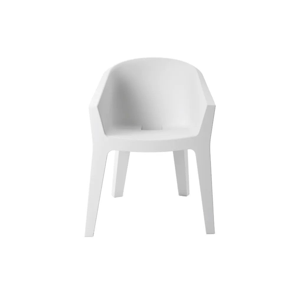 Poltrona Frozen di Plust, in polietilene bianco, con design geometrico e confortevole.