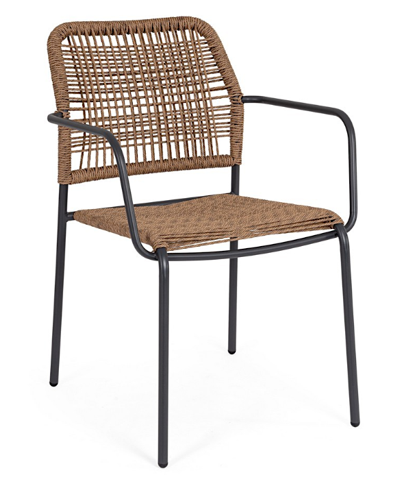 Sedia da esterno con struttura in acciaio trattato (e-coating) e seduta in fibra sintetica intrecciata (twisted).