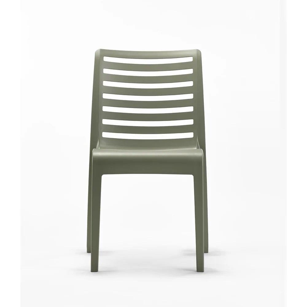 La Sedia Slat di Grosfillex, in polipropilene verde foresta opaco, unisce design contemporaneo e massima praticità.
