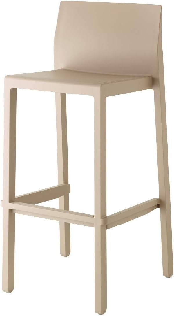 Lo sgabello Kate di Scab Design in color tortora con altezza di 75 cm è realizzato in tecnopolimero e dotato di schienale, rendendolo un'opzione ideale per ambienti moderni e funzionali, come bar, cucine o ristoranti.