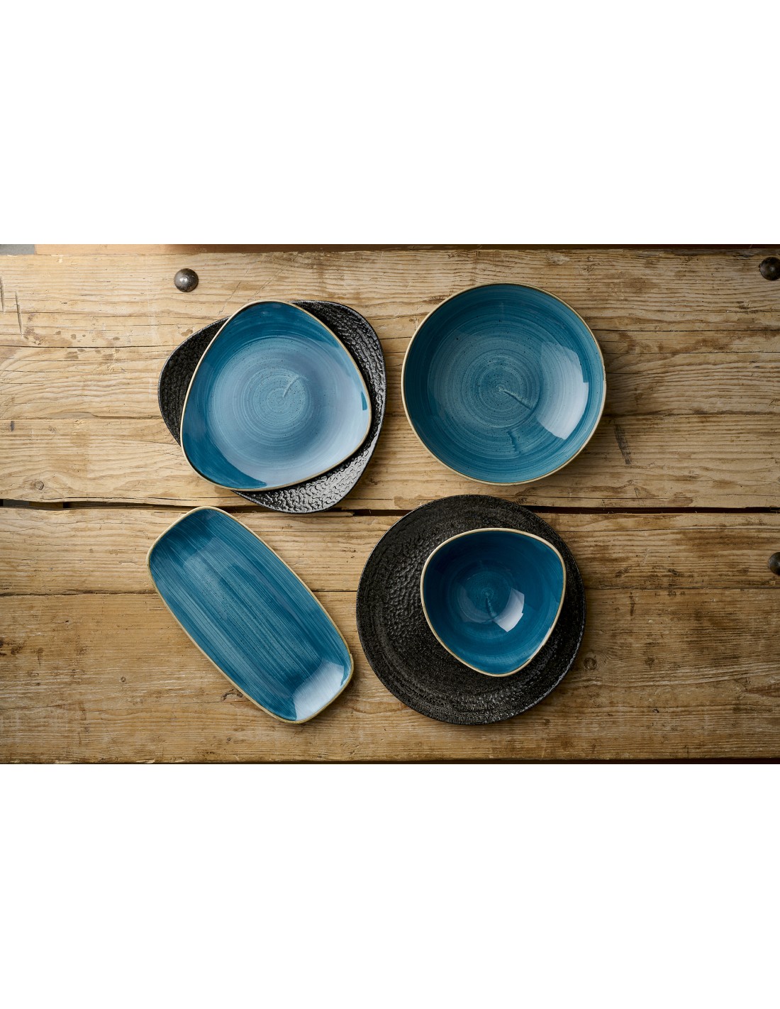 La ciotola triangolare blu Churchill Stonecast misura 18,5 cm ed è realizzata in porcellana resistente. Ha un design elegante e moderno, perfetta per servire antipasti o dessert. È adatta per lavastoviglie e microonde, combinando stile e praticità.
