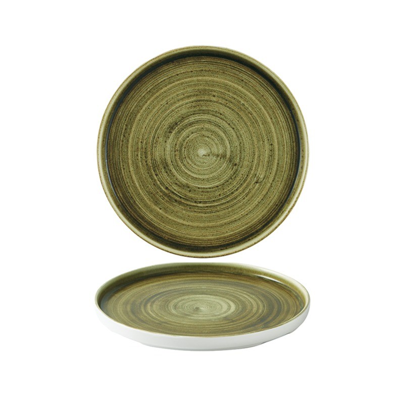 Piatto piano bordato Churchill Stonecast Plume Olive in porcellana verde da 26 cm di diametro e 2 cm di altezza è elegante e resistente: