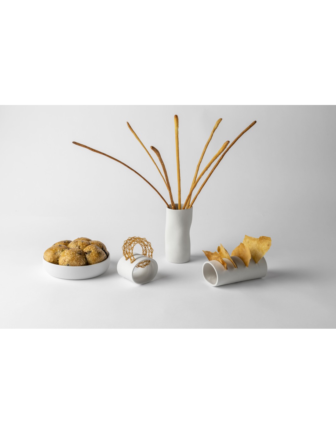 Il Portacialde della linea Elementi Sumisura di Royale è un elegante pezzo in porcellana bianca, ideale per servire cialde, chips e altri finger food.