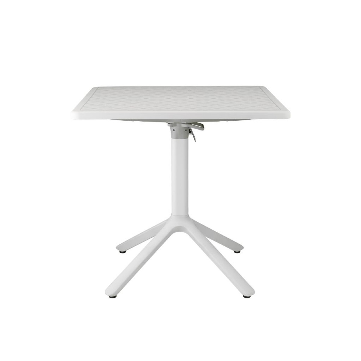 Il tavolo Eco ha un piano ribaltabile di 70x70 cm in lino e un'altezza di 109 cm. Pratico e accogliente, è ideale per interni ed esterni, perfetto per bar e ristoranti.