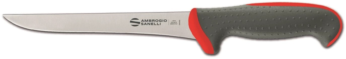 Il coltello disosso stretto Tecna rosso Ambrogio Sanelli da 18 cm è realizzato per offrire efficienza e affidabilità ai professionisti del settore HO.RE.CA. che richiedono strumenti di precisione per il disosso e la lavorazione delle carni.