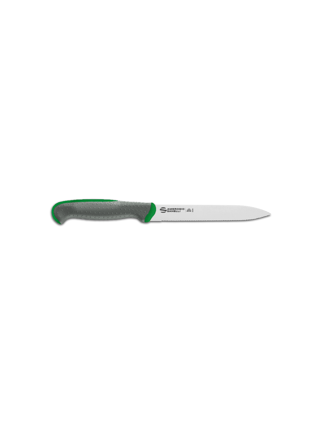 Il coltello multiuso microdentato Tecna verde Ambrogio Sanelli da 14 cm è uno strumento professionale versatile, ideale per il settore HO.RE.CA..
