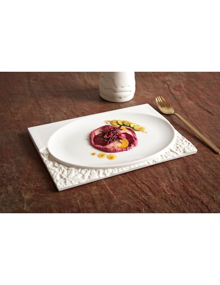 Design Elegante e Raffinato: Il colore bianco della porcellana, arricchito dall'effetto "Terra", conferisce alla salsiera un aspetto sofisticato e naturale. Il design semplice ed elegante si adatta facilmente a ogni tipo di mise en place, aggiungendo un tocco di classe alla tua tavola.