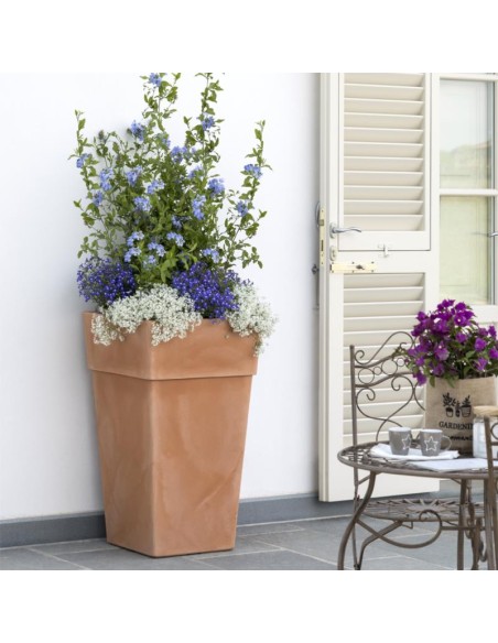 Misura 50 x 50 cm, ha un’altezza di 87,5 cm e una grande capienza per ospitare piante e arbusti.